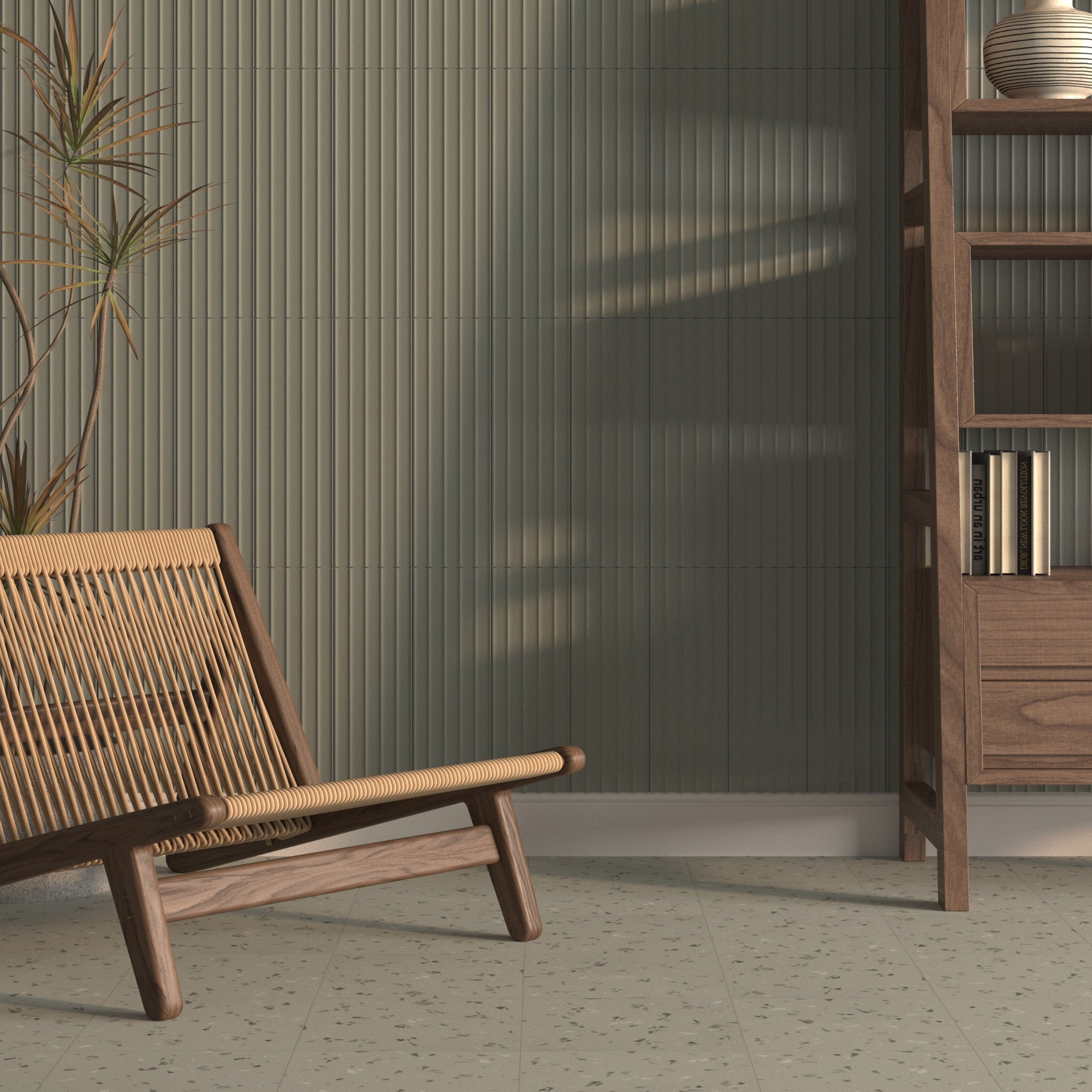 Avec son aspect épuré et harmonieux, ce carreau en grès cérame 20x20 cm réinterprète le terrazzo classique. Son fond gris neutre, agrémenté de fragments peints à la main dans d'autres nuances de gris, lui confère élégance et polyvalence. Sa finition mate Soft&Safe garantit un toucher doux et une sécurité optimale dans les pièces humides.