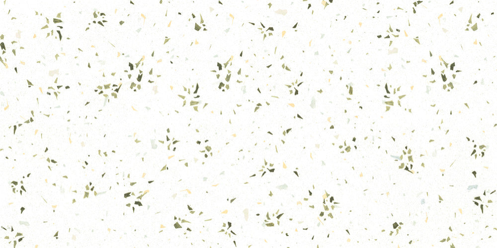 Ce carreau en grès cérame de 20 x 20 cm réinterprète le terrazzo traditionnel par une expression artistique. Un motif peint à la main, composé de fragments botaniques aux nuances de vert variées sur fond blanc, évoque la nature, la sérénité et la fraîcheur. Sa finition mate douce et sûre offre un toucher soyeux et une utilisation sans danger au sol, même dans les pièces humides.