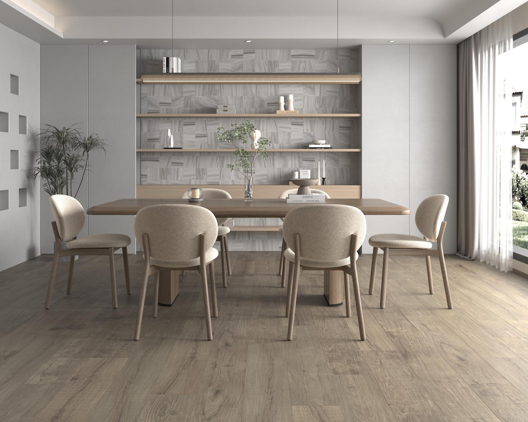 Quercus est une série de carreaux en porcelaine qui évoque l’élégance du chênevénitien, en reproduisant fidèlement sa texture et ses nuances. Disponible en cinq teintes, elle s’adapte à divers espaces grâce à un émail spécial qui offre une surface douce et durable. Elle allie l’esthétique naturelle du bois à la résistance et à la facilité d’entretien de la porcelaine. Une plinthe assortie 11x120 cm complète la série, assurant une finition soignée entre sol et mur.