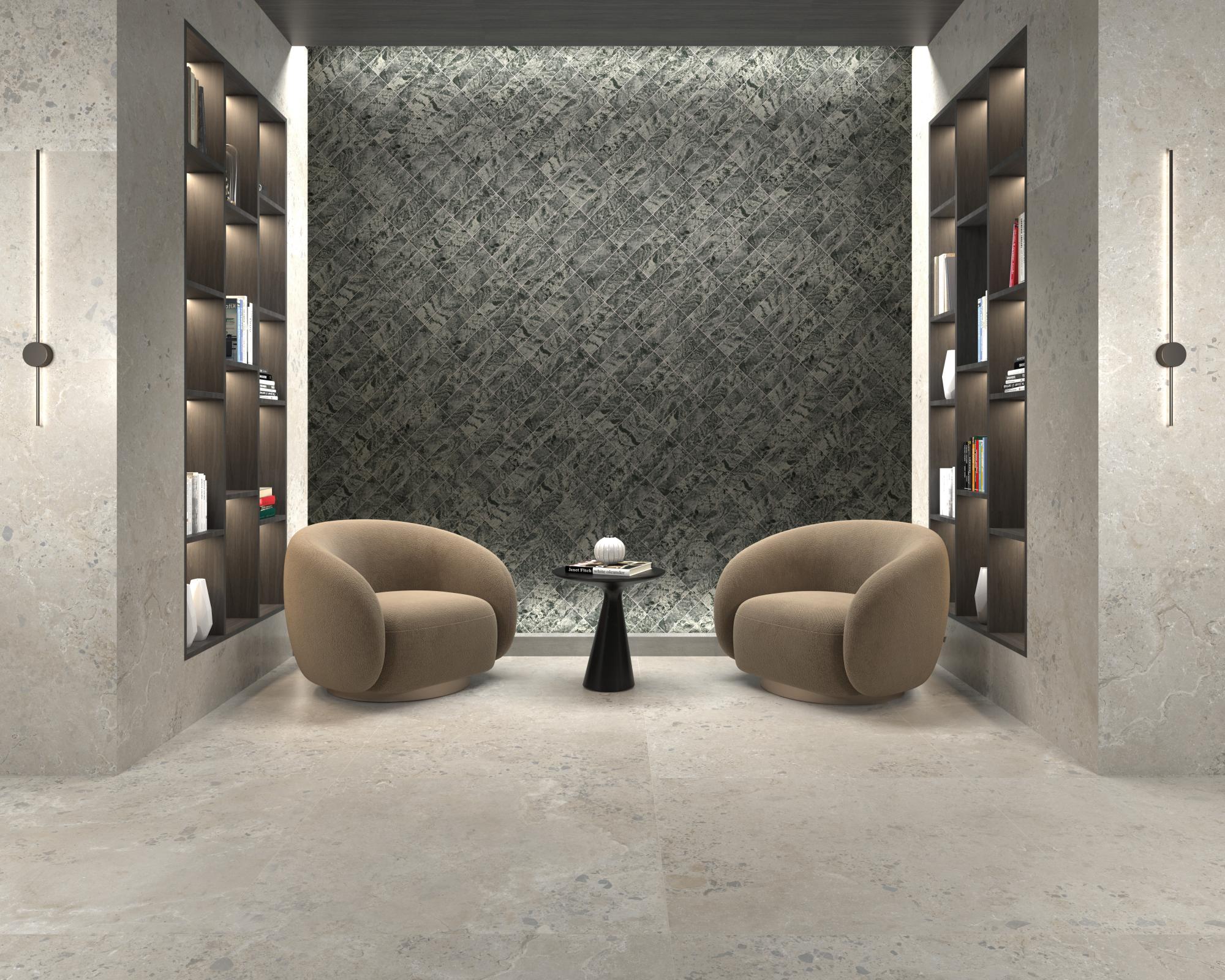 Pietra Viva est une série de carreaux en porcelaine inspirée de la brèche italienne, intégrée à la collection Shelter. Elle se distingue par ses veines irrégulières et ses incrustations minérales, reproduites avec une grande précision. Disponible en trois tonalités et trois formats, elle offre une esthétique naturelle, méditerranéenne et sophistiquée, idéale pour les intérieurs comme pour les extérieurs.