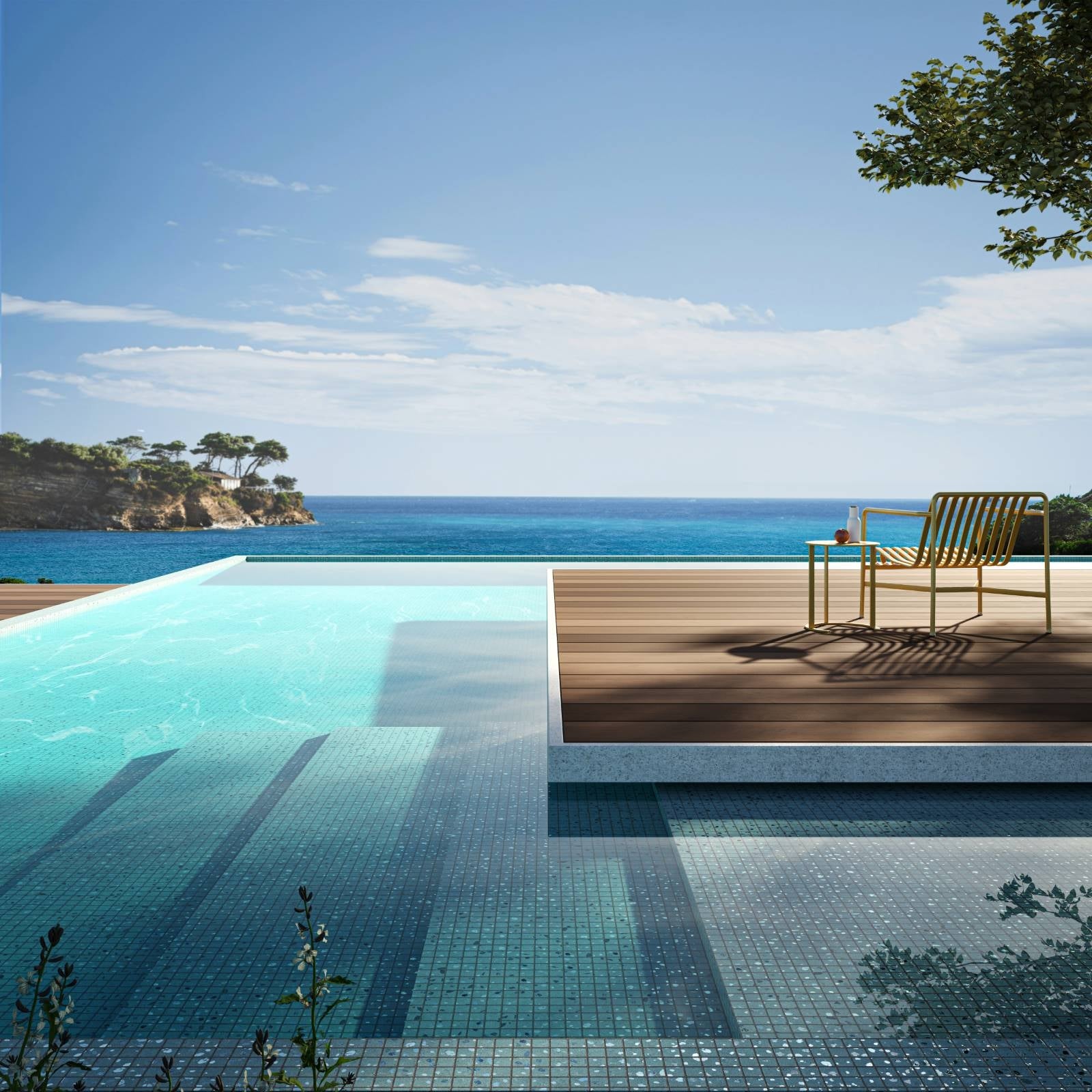 La collection Terrazzo Teal, est une mosaïque avec un effet irisé spécialement indiquée comme revêtement d’intérieurs et pour piscines, spas, saunas et espaces wellness qui recherchent la détente et le plaisir. Un privilège pour les sens.